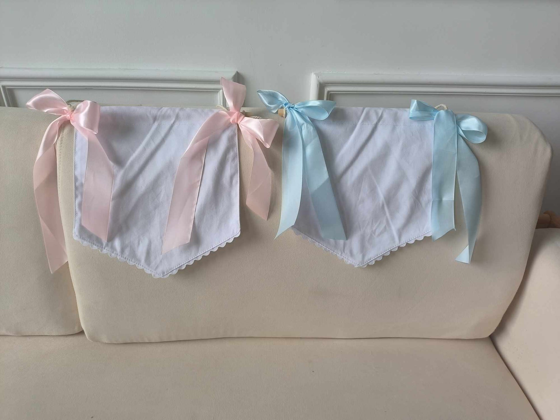 🎨Available color: white banner as shown with pink or blue ribbon, or remove ribbon and decorate with your own creativity